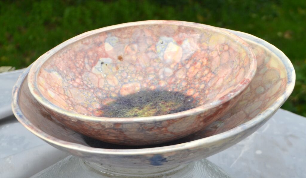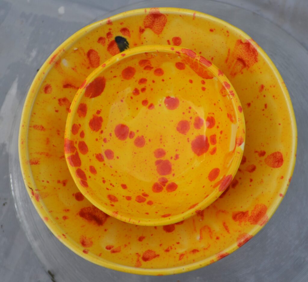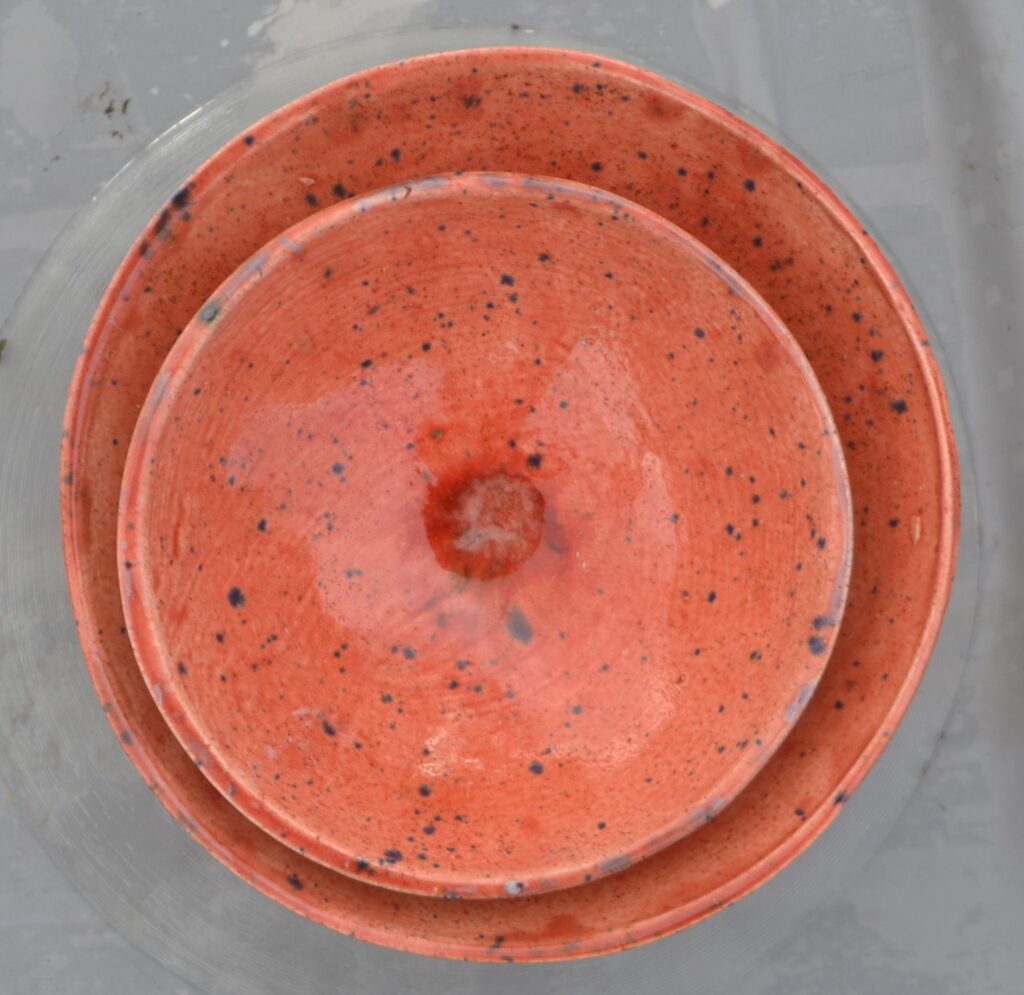 - Het grotere ronde schaaltje heeft een doorsnee van 17 cm en is 5 cm hoog.