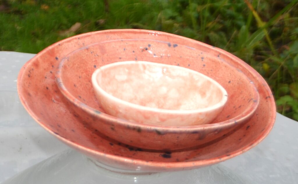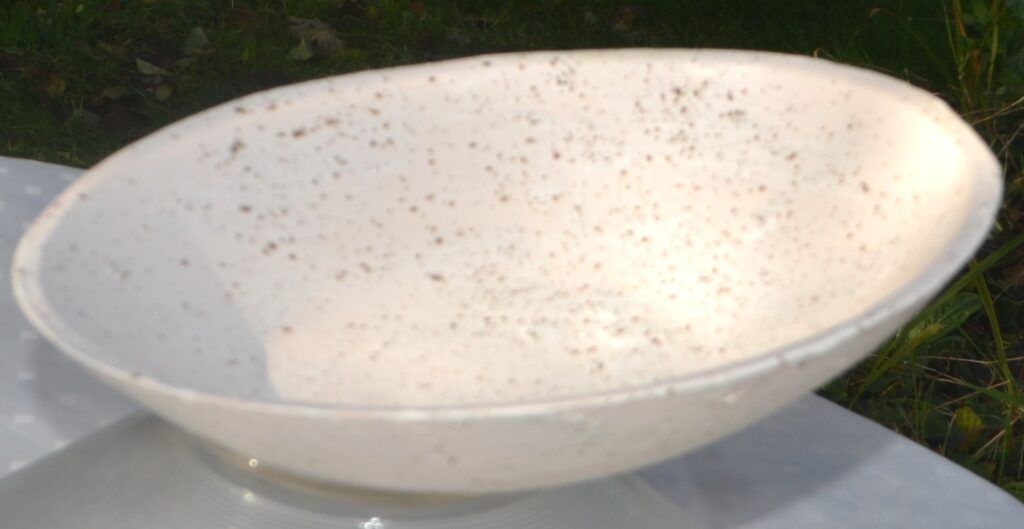Deze borden zijn ontstaan vanuit mijn liefde voor natuurlijke vormen en subtiele dynamiek. Ze zijn ondiep en a-symmetrisch gevormd, waarbij de achterkant iets hoger oploopt dan de voorkant. Hierdoor lijkt het bord zachtjes in beweging te zijn, alsof het zich aanpast aan zijn omgeving. Die lichte spanning in de vorm geeft een natuurlijke levendigheid aan de tafel, zonder de rust te verstoren. Zelf dek ik de tafel de borden verschillende kleuren hebben. Eén kleur kan natuurlijk ook.