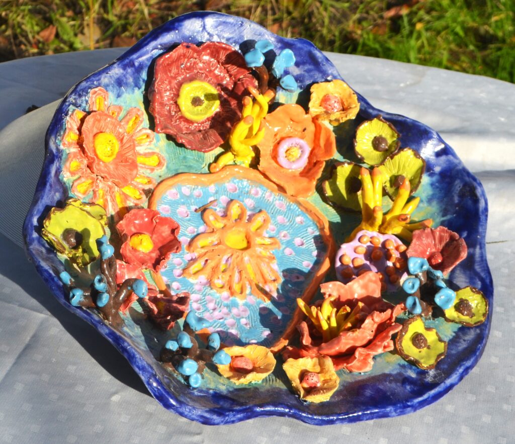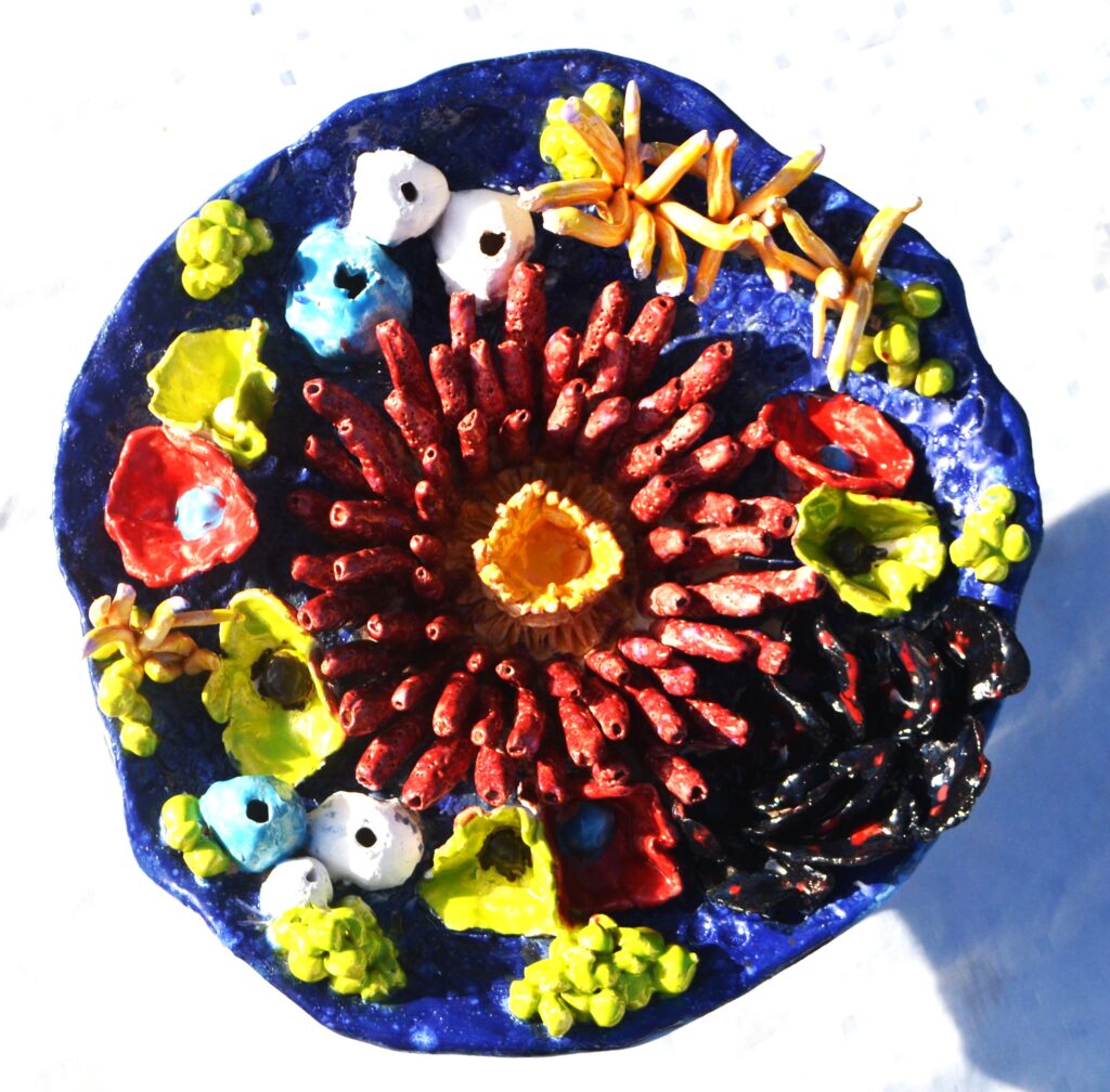 Het koraalproject is ontstaan vanuit zorg en verwondering. Koraalriffen behoren tot de meest rijke en kwetsbare ecosystemen ter wereld. Door de omslag in het milieu verdwijnen ze in hoog tempo. In dit werk probeer ik aandacht te vragen voor die kwetsbaarheid en zo het koraal een nieuwe, tastbare vorm te geven in klei. In een reeks schalen wil ik het de koraalriffen verbeelden. In sommige schalen verschijnen organische structuren die doen denken aan koraal: vertakkingen, openingen en gelaagdheid en laat ik het koraal opbloeien in de levendige kleuren die het ooit had, kleuren die nu langzaam verdwijnen. Daartussen staan schalen met kristalglazuur – die zich tijdens het stoken zich vormen-. Deze glazuren verwijzen naar groei en schoonheid, maar ook naar iets dat langzaam en onvoorspelbaar ontstaat – net als koraal zelf.de bodem van de oceaan. De schalen hebben een rafelige rand, zoals ook de bodem niet glad en geplaveid is.